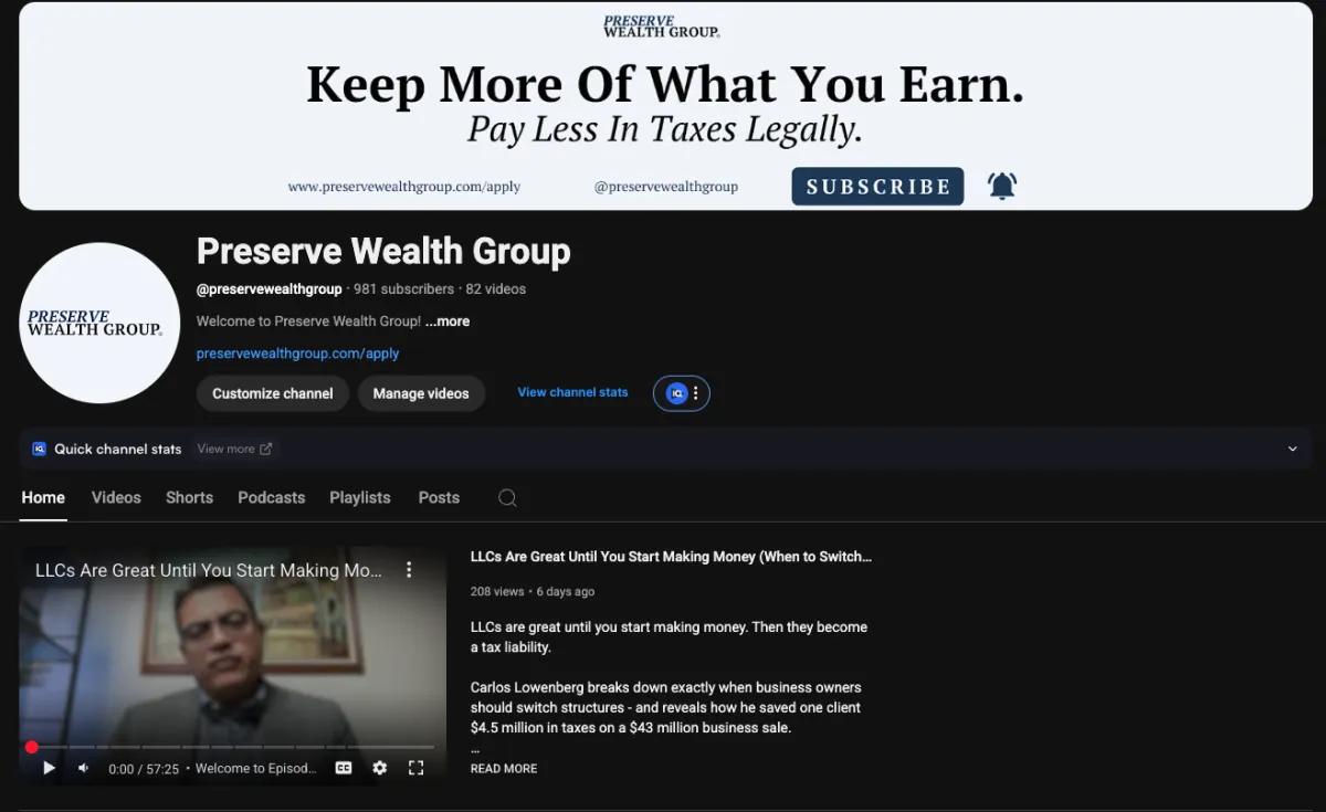 We don’t just talk strategy behind closed doors. On Preserve Wealth Group's YouTube channel, we share breakdowns, playbooks, and real numbers from inside our relationships with North America's top Financial Consultants.